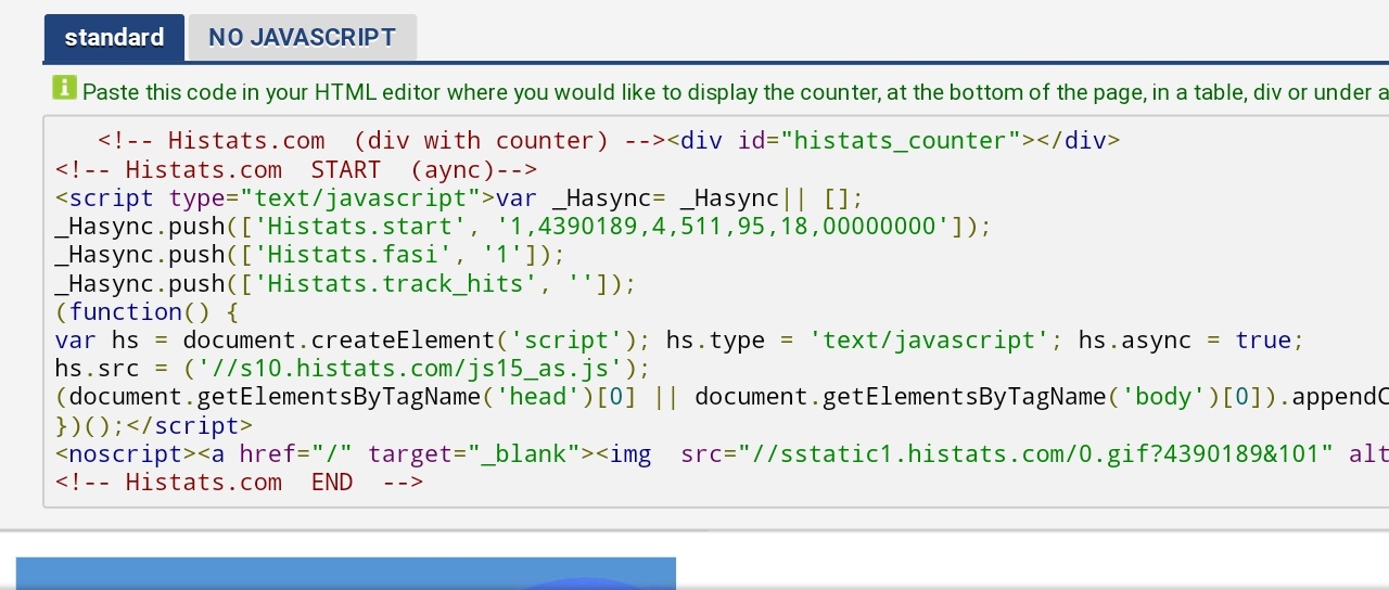 Sebelum memasang widget nya kalian sebaiknya copy paste terlebih dahulu script widget yang diberikan oleh pihak Histats.