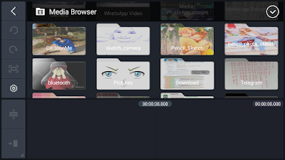 Jika kita belum memasukkan material dasar pada langkah ini, maka kamu belum bisa mengimport material lain seperti teks, gif, stiker maupun musik. Disini kita diharuskan untuk mengklik “Media Browser” dan nantinya akan keluar tampilan folder galeri yang bisa kita pilih seperti tampilan ini dan kalian bisa memilih video/foto apa yang akan kalian jadikan sebuah video.