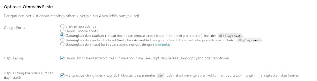 Di fitur menu extra kalian centang gabungkan dan tautan head,hapus emoji bawaan wordpress.menghapus string kueri.