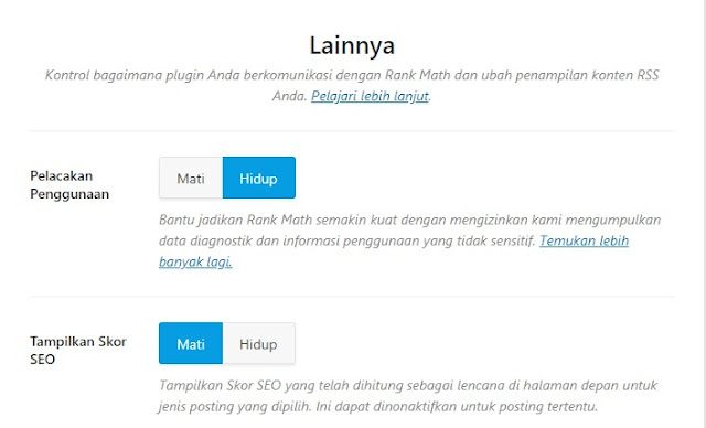 Buka Tautan Eksternal Di Tab/Jendela Baru : On/Hidup Fungsi ini berguna untuk pengurangan bounce rate,fungsi nya di saat kamu melampirkan tautan eksternal maka otomatis Rank Math melakukan open new tab di jendela baru tanpa menutup situs kamu.